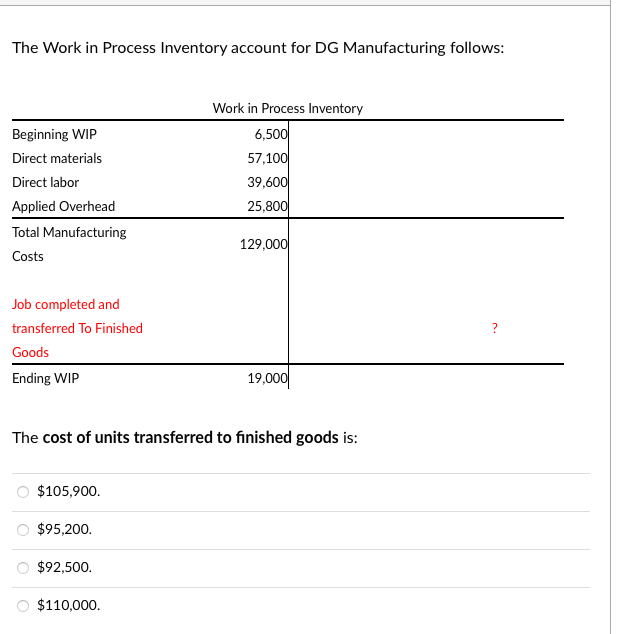 Solved The Work In Process Inventory Account For Dg Chegg Com